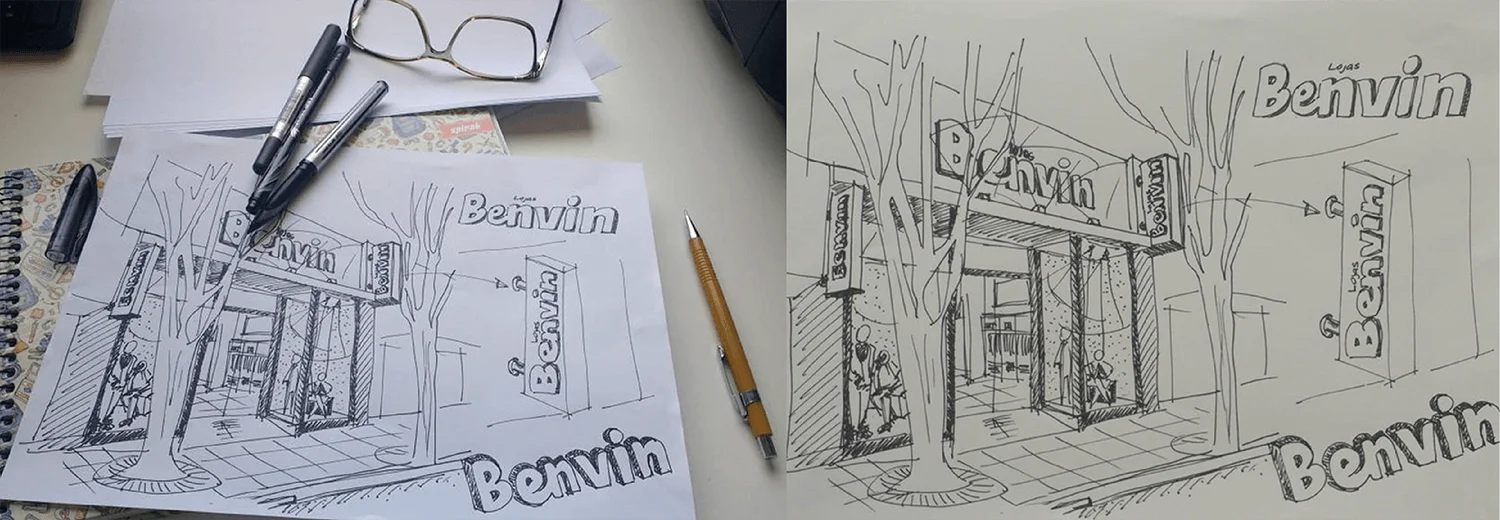 A arquitetura das lojas Benvin reforça a identidade central da marca: conforto e acolhimento. Desenvolvemos o projeto da fachada e dos ambientes internos, além do estudo luminotécnico, criando espaços com iluminação quente e um layout simples, aconchegante e versátil.