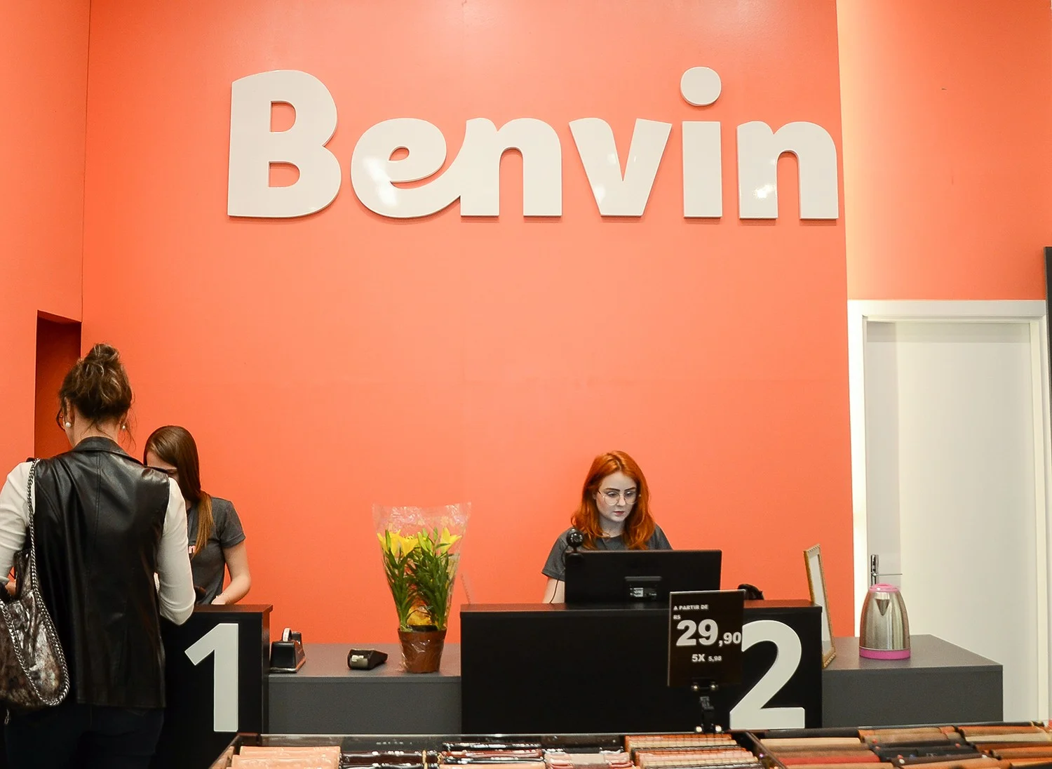 Também desenhamos todos os pontos de contato físicos da marca, incluindo uniformes e embalagens, garantindo que a experiência fosse consistente em cada detalhe. O resultado é um ambiente onde a identidade se manifesta por completo, um lugar pensado para receber, conectar e fazer com que todos se sintam Benvin.