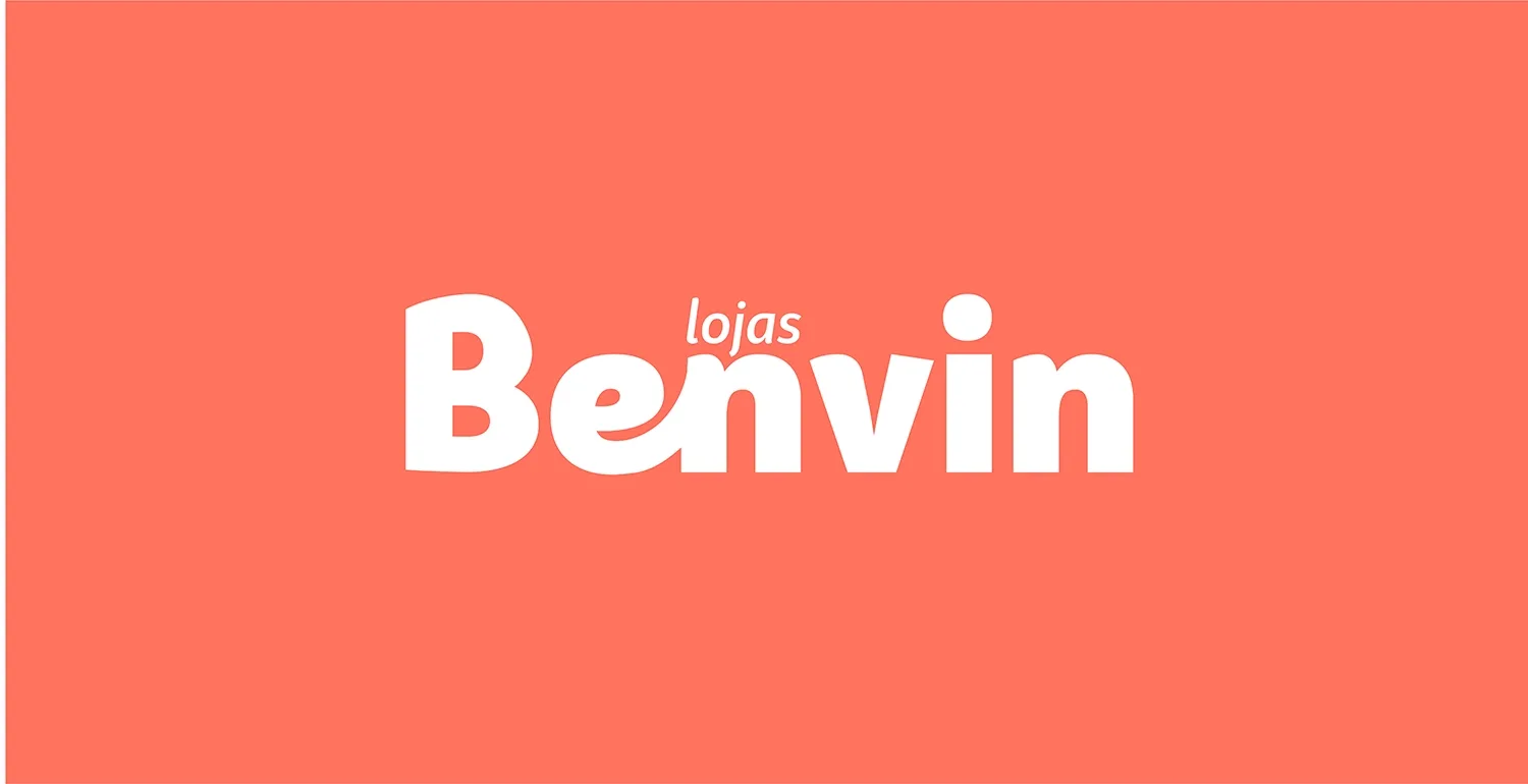 A construção do logotipo privilegia formas orgânicas e volumes generosos, transmitindo acessibilidade, confiança e presença no ponto de venda. O conjunto reforça a proposta da Benvin como uma marca próxima das pessoas, calorosa e fácil de reconhecer.