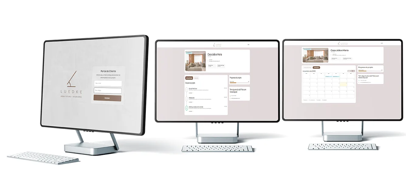 E, porque acreditar em inovação também é parte da sua essência, Pamila criou junto do site institucional o Portal Luedke, uma plataforma exclusiva que coloca o cliente dentro da obra, mesmo à distância. No portal, é possível acompanhar tudo em tempo real: linha do tempo, calendário completo da execução, fotos, vídeos e notificações integradas ao WhatsApp, mostrando exatamente em qual etapa a obra está. Transparência, cuidado e clareza, sem o tradicional sentimento de estar perdido durante o processo. Os projetos foram assinados pela nômade em parceria com a inovalize.