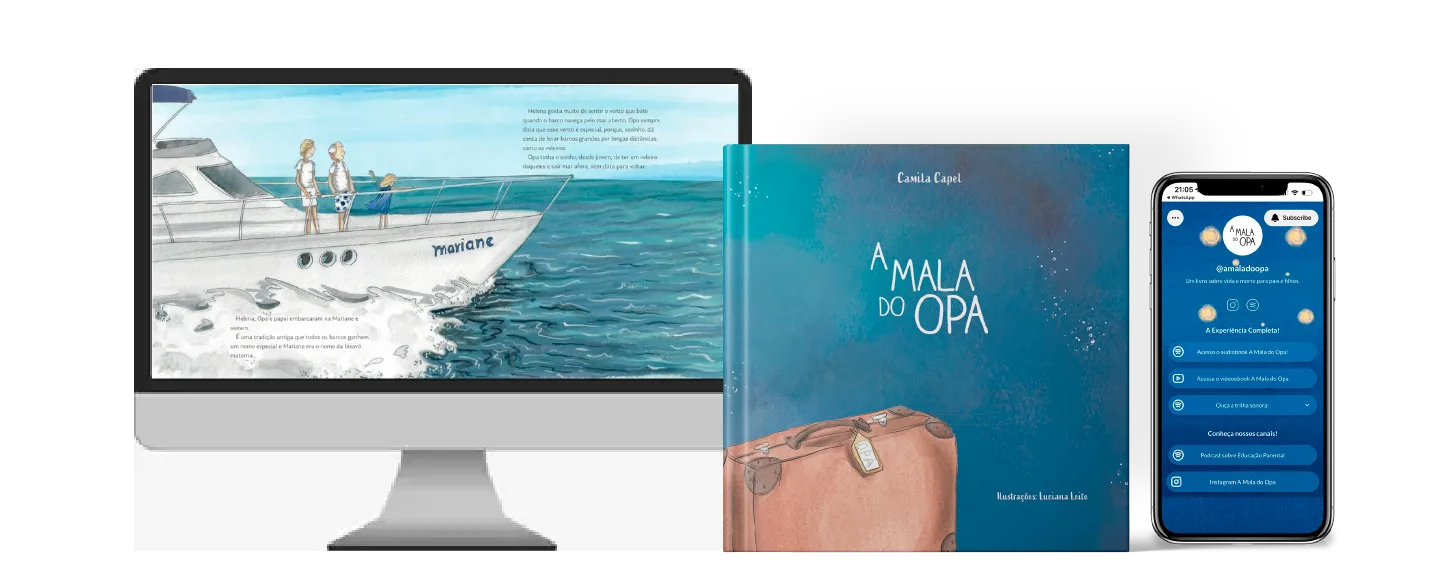 “A Mala do Opa”, escrito por Camila Capel, é um livro sensível e disruptivo que aborda o luto para crianças, inspirado em uma vivência pessoal da autora. A obra foi criada como uma ação de arrecadação e divulgação do projeto Opaoma, que atua na preservação das águas, áreas costeiras e manguezais de Angra dos Reis — cenário onde a história acontece.