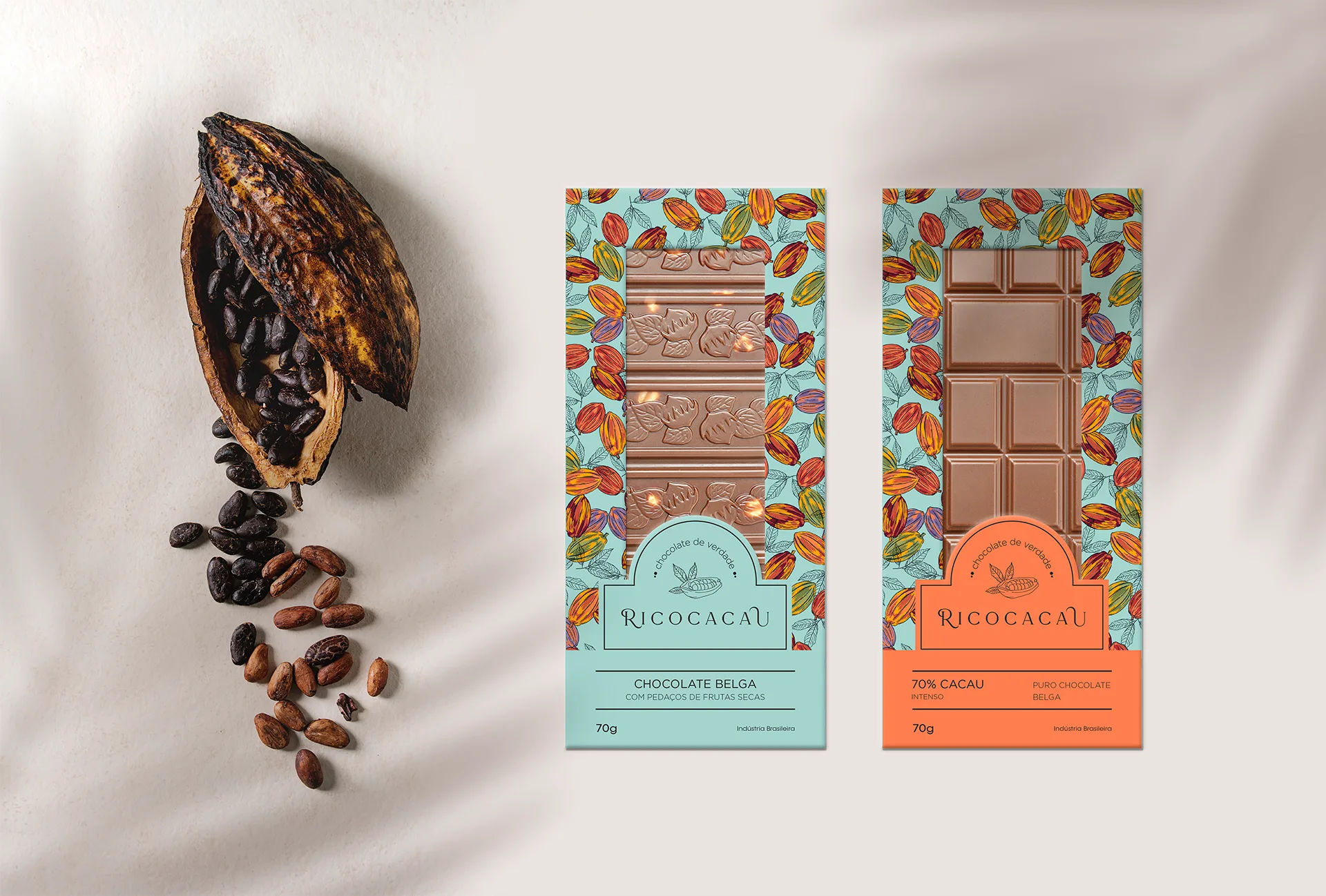 A RicoRico Cacau é uma marca idealizada por Elsibete Cavalar, que trabalha com chocolate belga e buscava um rebranding para uma nova linha de produtos premium, capazes de comunicar sabor e beleza excepcionais.